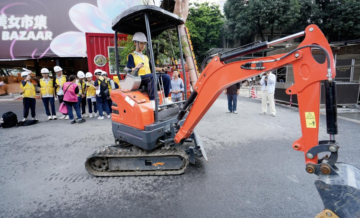 在“小小工程师”体验区,学生们戴上安全帽,在专业导师的指导下体验挖掘机操作、观察工程细节,认真记录着每一个专业知识点;消防体验区里,大家学习灭火器使用方法、穿戴消防装备,在模拟灭火演练中学会沉着应对突发情况;市集创客岗位上,学生们自主选品、布置摊位,主动招揽顾客,在一次次沟通中锻炼表达能力。