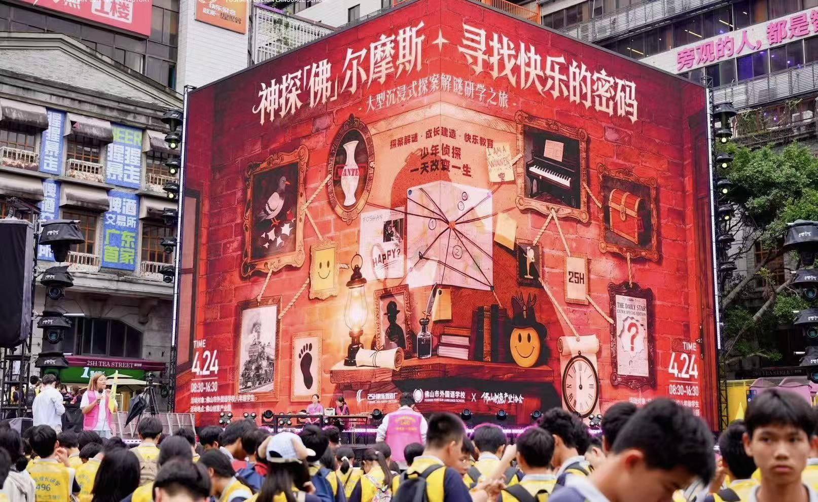 与传统研学不同,这批来自佛山市外国语学校八年级的学生,不仅沉浸式体验董事长助理、茶饮师、消防员等20种真实职业,更化身“神探”,在《神探“佛”尔摩斯·寻找快乐的密码》大型探案剧本游中破解“快乐失窃”谜案,在社会实践中启发梦想、快乐成长,践行自我教育的理念。